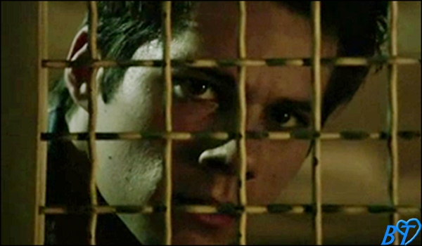 In the shadows Stiles watches how everything goes very wrong. The alarm goes off and they are all locked in. Scott roars.